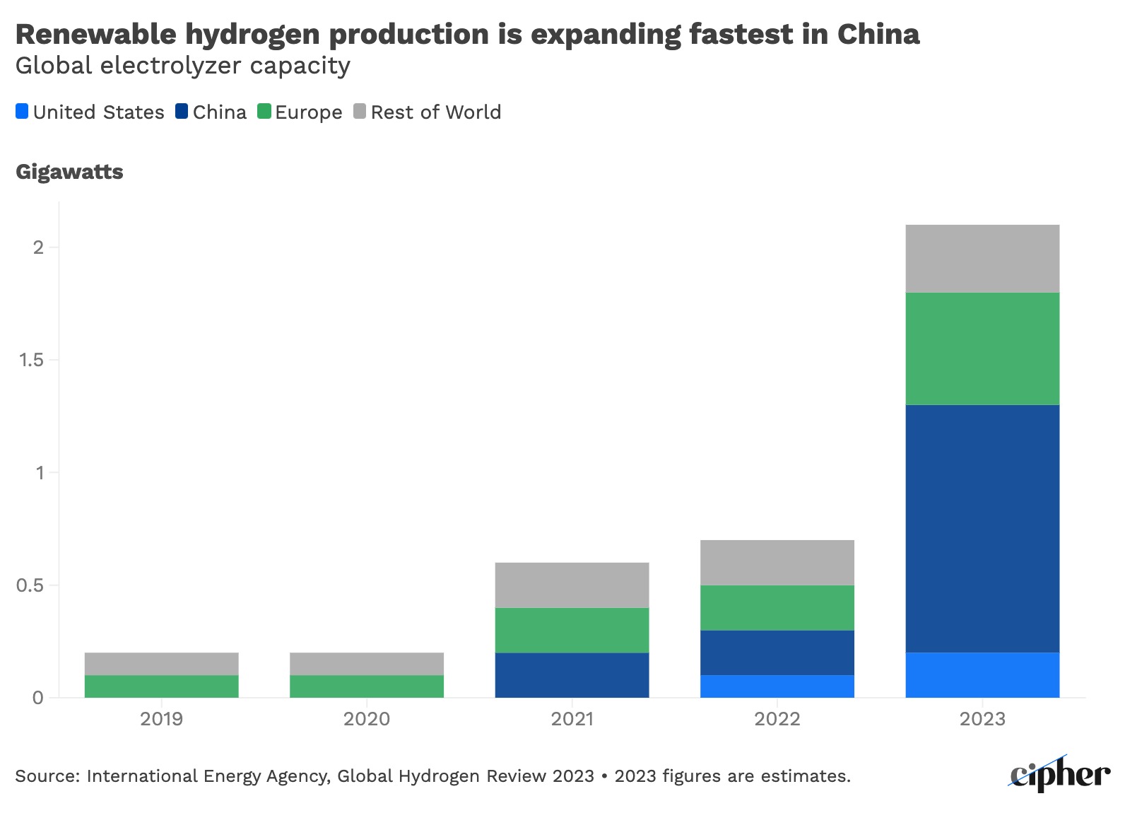 Source: International Energy Agency, Global Hydrogen Review 2023 • 2023 figures are estimates.